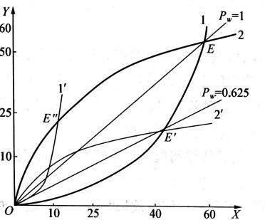 如果我們對任一方的供給曲線做統(tǒng)計預(yù)測或回歸預(yù)測,比如,美國國際快遞的供給曲線1,一方的貿(mào)易供給數(shù)量會沿著這條供給曲線一直走下去,按經(jīng)濟規(guī)律來說,在一定貿(mào)易條件下一旦達到均衡點E或E’,雙方貿(mào)易不再增長。但是,在無均衡點E,E'的約束下,這種預(yù)測會一直延續(xù)下去??赡茉?0年后突破全世界的極限。該問題下,一且一方比如美國采取貨幣貶值或者其他引起國際快遞價格變化的做法,則兩國商品交換的發(fā)生變化,貿(mào)易貨運條件發(fā)生變化,這時,美國的供給曲線1已經(jīng)脫離初始軌跡,發(fā)生了旋轉(zhuǎn)位移,并與貿(mào)易伙伴方的供給曲線2交于新的均衡點E’處。而依據(jù)所取得的數(shù)據(jù)作出的線性回歸預(yù)測結(jié)果,必然遠遠脫離真實情況。